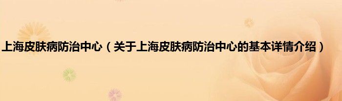 大家好我是小蝌蚪,上海皮肤病防治中心,关于上海皮肤病防治中心的基本详情介绍很多人还不知道,那么现在让我们一起来看看吧!