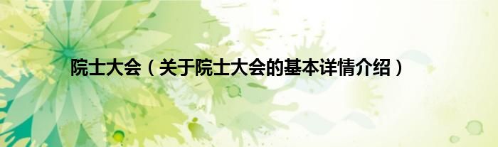 本文关于院士大会的基本详情介绍就讲解完毕,希望对大家有所帮助。