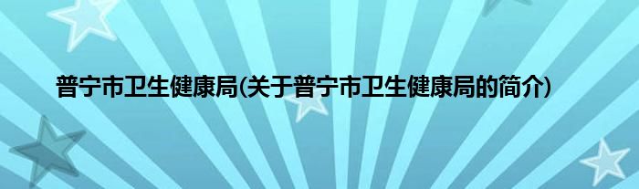 大家好,普宁市卫生健康局,关于普宁市卫生健康局的简介很多人还不知道,现在让我们一起来看看吧!