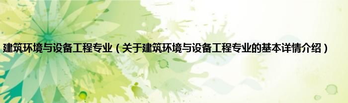 本文关于建筑环境与设备工程专业的基本详情介绍就讲解完毕,希望对大家有所帮助。