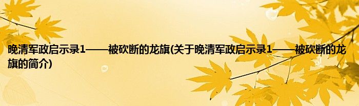 本文关于晚清军政启示录1——被砍断的龙旗的简介就讲解完毕,希望对大家有所帮助。