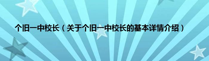 本文关于个旧一中校长的基本详情介绍就讲解完毕,希望对大家有所帮助。