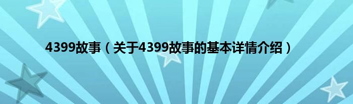 本文关于4399故事的基本详情介绍就讲解完毕,希望对大家有所帮助。