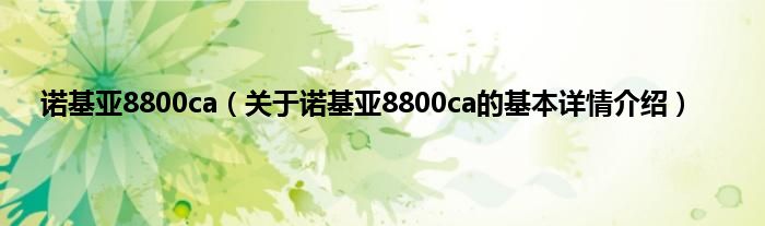 本文关于诺基亚8800ca的基本详情介绍就讲解完毕,希望对大家有所帮助。