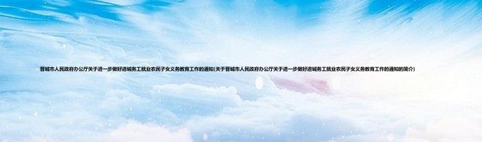 本文关于晋城市人民政府办公厅关于进一步做好进城务工就业农民子女义务教育工作的通知的简介就讲解完毕,希望对大家有所帮助。