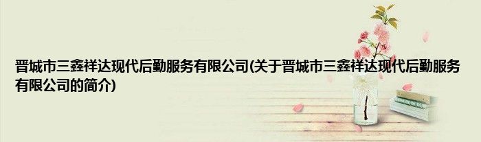 本文关于晋城市三鑫祥达现代后勤服务有限公司的简介就讲解完毕,希望对大家有所帮助。