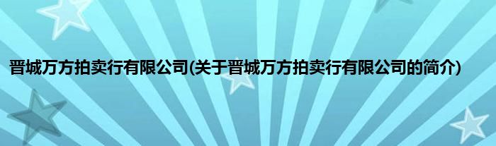本文关于晋城万方拍卖行有限公司的简介就讲解完毕,希望对大家有所帮助。