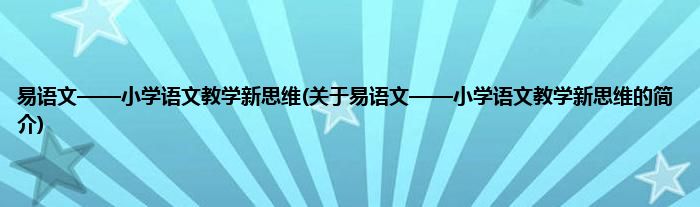 本文关于易语文——小学语文教学新思维的简介就讲解完毕,希望对大家有所帮助。