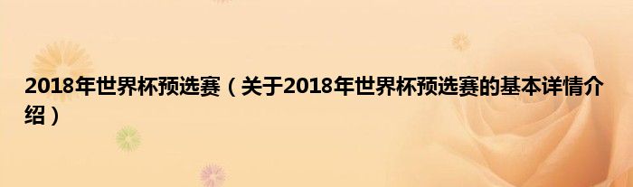 本文关于2018年世界杯预选赛的基本详情介绍就讲解完毕,希望对大家有所帮助。