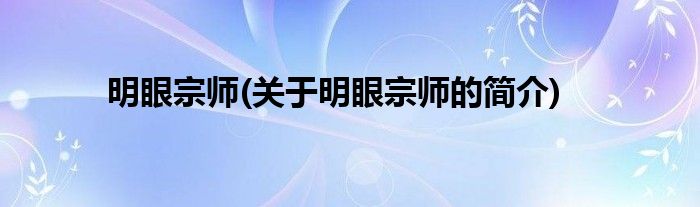 明眼宗师(关于明眼宗师的简介)