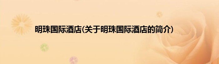 本文关于明珠国际酒店的简介就讲解完毕,希望对大家有所帮助。