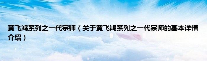 黄飞鸿系列之一代宗师(关于黄飞鸿系列之一代宗师的基本详情介绍)