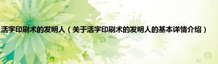 本文关于活字印刷术的发明人的基本详情介绍就讲解完毕,希望对大家有所帮助。