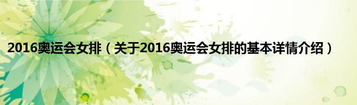 本文关于2016奥运会女排的基本详情介绍就讲解完毕,希望对大家有所帮助。