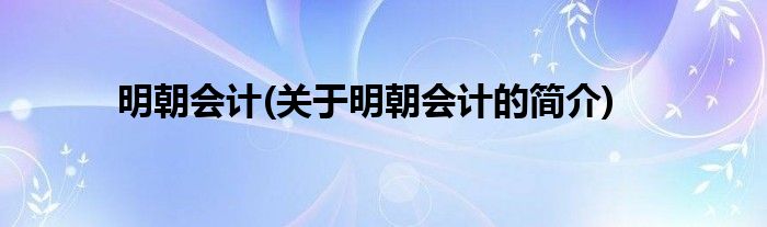 明朝会计(关于明朝会计的简介)