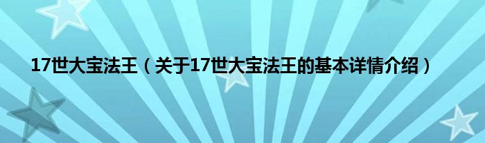 本文关于17世大宝法王的基本详情介绍就讲解完毕,希望对大家有所帮助。