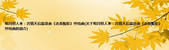 明月照人来:言情天后寐语者《衣香鬓影》终结曲(关于明月照人来:言情天后寐语者《衣...