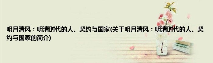 本文关于明月清风:明清时代的人、契约与国家的简介就讲解完毕,希望对大家有所帮助。