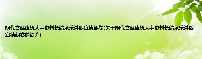 本文关于明代宫廷建筑大事史料长编永乐洪熙宣德朝卷的简介就讲解完毕,希望对大家有所帮助。