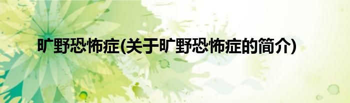 大家好,旷野恐怖症,关于旷野恐怖症的简介很多人还不知道,现在让我们一起来看看吧!