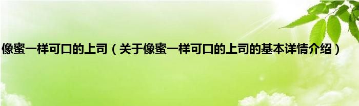 本文关于像蜜一样可口的上司的基本详情介绍就讲解完毕,希望对大家有所帮助。