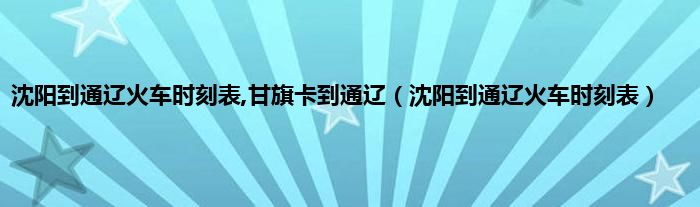 大家好,小问来为大家解答以上问题。沈阳到通辽火车时刻表,甘旗卡到通辽,沈阳到通辽火车时刻表这个很多人还不知道,现在让我们一起来看看吧!
