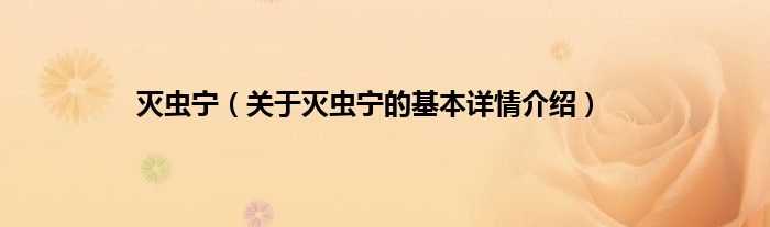 大家好我是小蝌蚪,灭虫宁,关于灭虫宁的基本详情介绍很多人还不知道,那么现在让我们一起来看看吧!