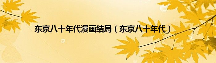 大家好,小问来为大家解答以上问题。东京八十年代漫画结局,东京八十年代这个很多人还不知道,现在让我们一起来看看吧!