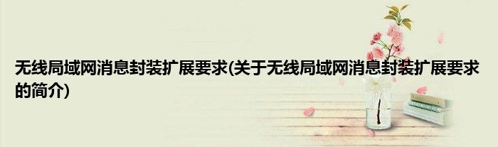 本文关于无线局域网消息封装扩展要求的简介就讲解完毕,希望对大家有所帮助。