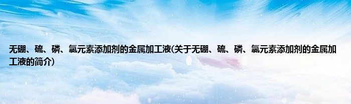 本文关于无硼、硫、磷、氯元素添加剂的金属加工液的简介就讲解完毕,希望对大家有所帮助。