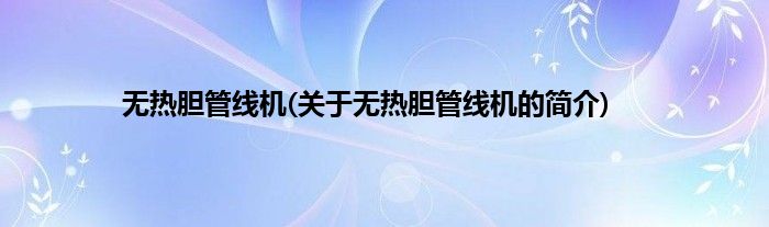 本文关于无热胆管线机的简介就讲解完毕,希望对大家有所帮助。