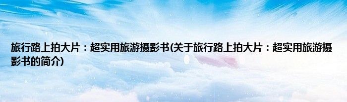 1、 《旅行路上拍大片:超实用旅游摄影书》是人民邮电出版社出版的图书。