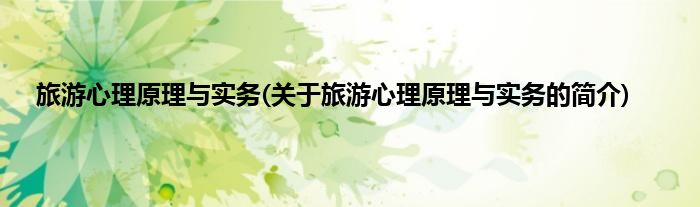 本文关于旅游心理原理与实务的简介就讲解完毕,希望对大家有所帮助。