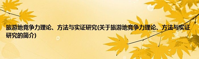 本文关于旅游地竞争力理论、方法与实证研究的简介就讲解完毕,希望对大家有所帮助。