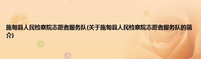 大家好,施甸县人民检察院志愿者服务队,关于施甸县人民检察院志愿者服务队的简介很多人还不知道,现在让我们一起来看看吧!