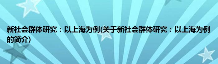 本文关于新社会群体研究:以上海为例的简介就讲解完毕,希望对大家有所帮助。