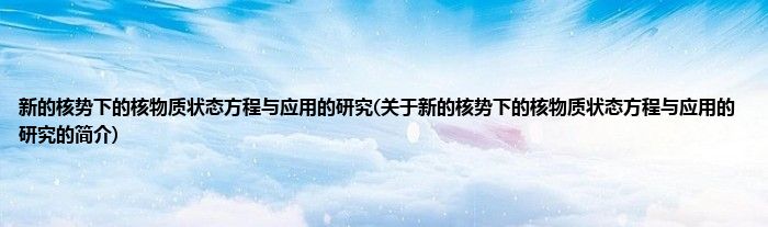 新的核势下的核物质状态方程与应用的研究(关于新的核势下的核物质状态方程与应用的研究的简介)