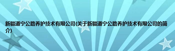 本文关于新疆道宁公路养护技术有限公司的简介就讲解完毕,希望对大家有所帮助。