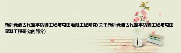 新疆绿洲古代军事防御工程与屯田灌溉工程研究(关于新疆绿洲古代军事防御工程与屯田灌溉工程研究的简介)