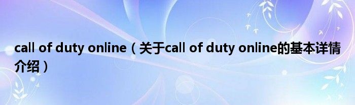 本文关于call of duty online的基本详情介绍就讲解完毕,希望对大家有所帮助。