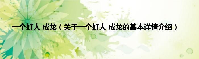 本文关于一个好人 成龙的基本详情介绍就讲解完毕,希望对大家有所帮助。