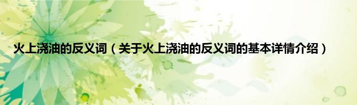 本文关于火上浇油的反义词的基本详情介绍就讲解完毕,希望对大家有所帮助。