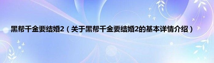 黑帮千金要结婚2(关于黑帮千金要结婚2的基本详情介绍)