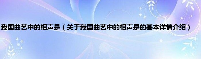 本文关于我国曲艺中的相声是的基本详情介绍就讲解完毕,希望对大家有所帮助。