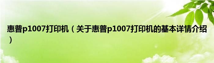 本文关于惠普p1007打印机的基本详情介绍就讲解完毕,希望对大家有所帮助。