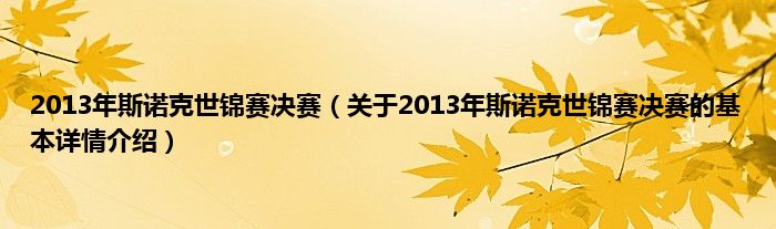 本文关于2013年斯诺克世锦赛决赛的基本详情介绍就讲解完毕,希望对大家有所帮助。