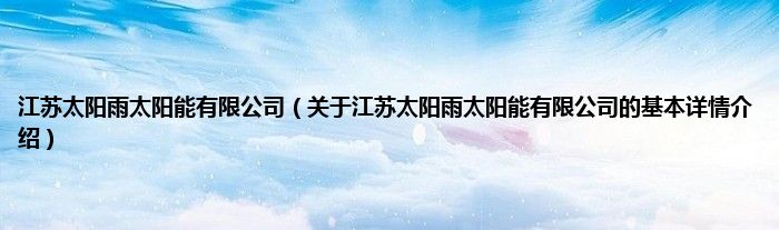 本文关于江苏太阳雨太阳能有限公司的基本详情介绍就讲解完毕,希望对大家有所帮助。