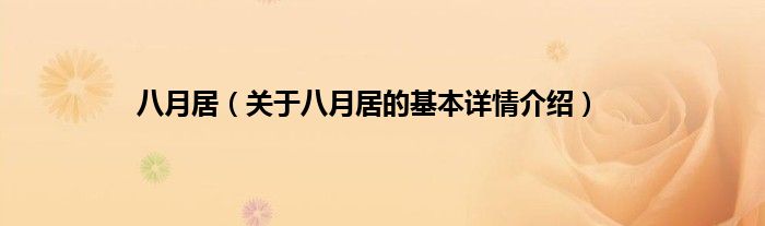 本文关于八月居的基本详情介绍就讲解完毕,希望对大家有所帮助。