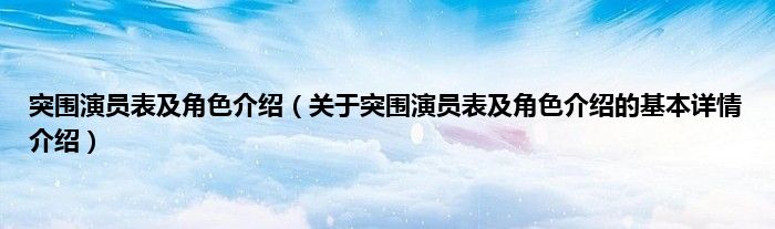 本文关于突围演员表及角色介绍的基本详情介绍就讲解完毕,希望对大家有所帮助。