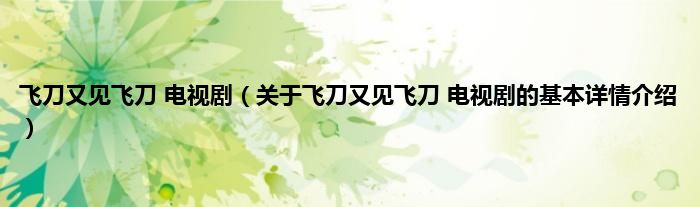 本文关于飞刀又见飞刀 电视剧的基本详情介绍就讲解完毕,希望对大家有所帮助。